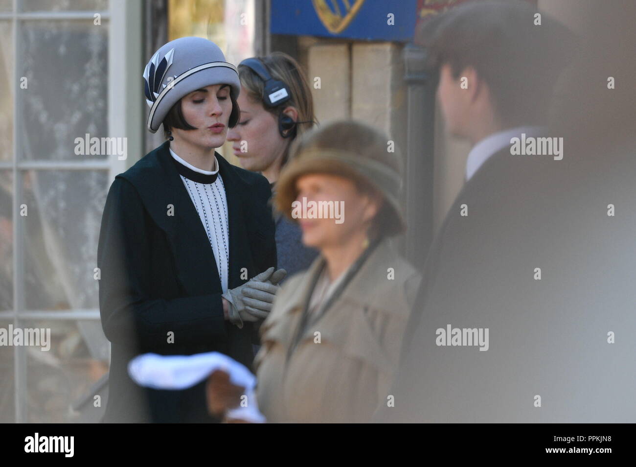 Michelle Dockery On The Downton Abbey Film Set In Lacock Wiltshire Stock Photo Alamy