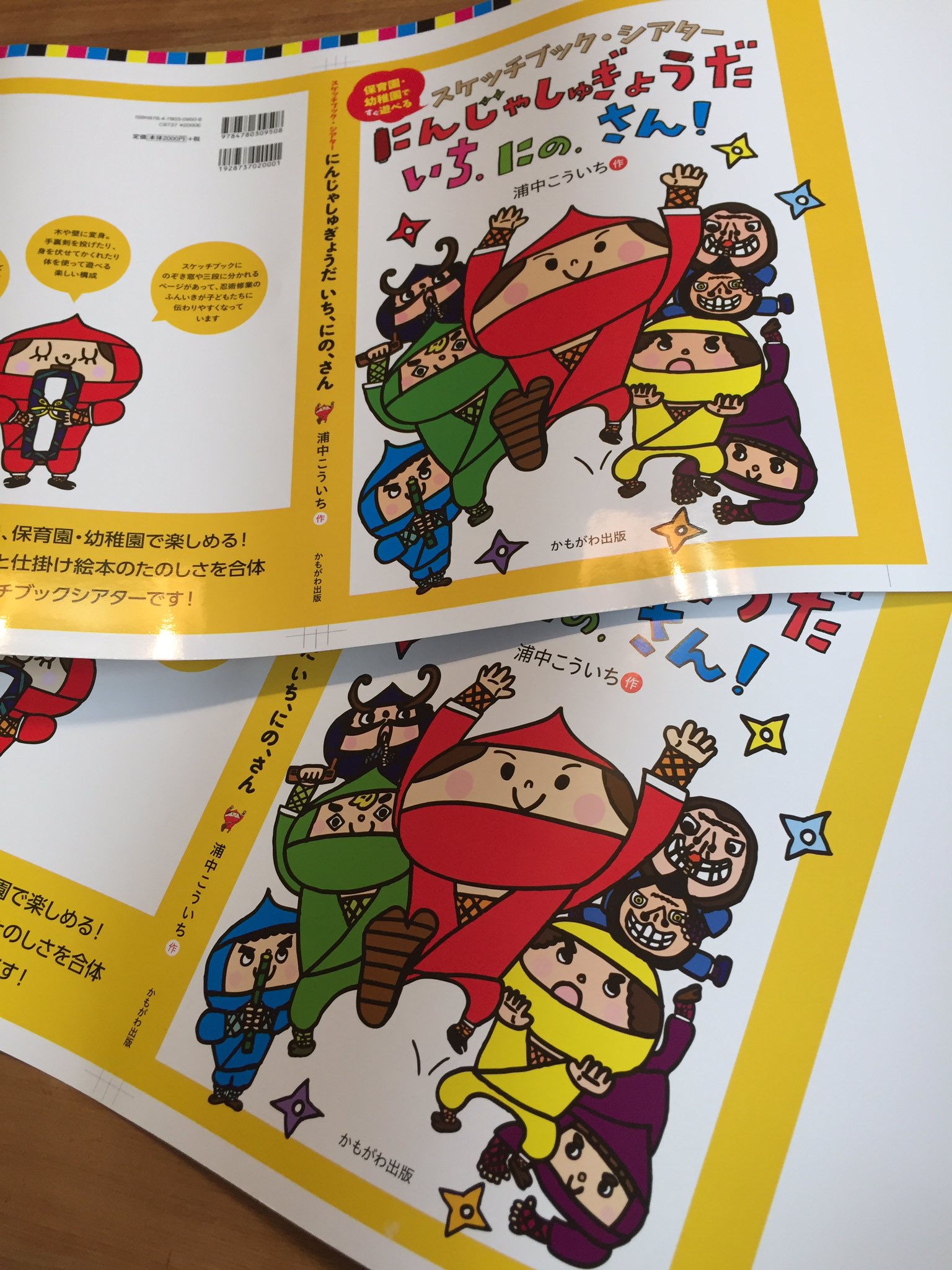 Ο χρήστης 浦中こういち στο Twitter: "色校がとどいたー! いい感じですよ! スケッチブックシアター第2弾『にんじゃしゅぎょうだ いち・にの・さん!』かもがわ出版 2月25日発売です! 1年間実際にいろんなところで使って直して使って直してしてきたものです!使える ...